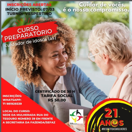 E não paramos por aí! Em Março, em parceira com o Instituto a Mulherada (@institutoamulherada), oferecemos duas bolsas para o Curso Preparatório de Cuidador de Idosos!